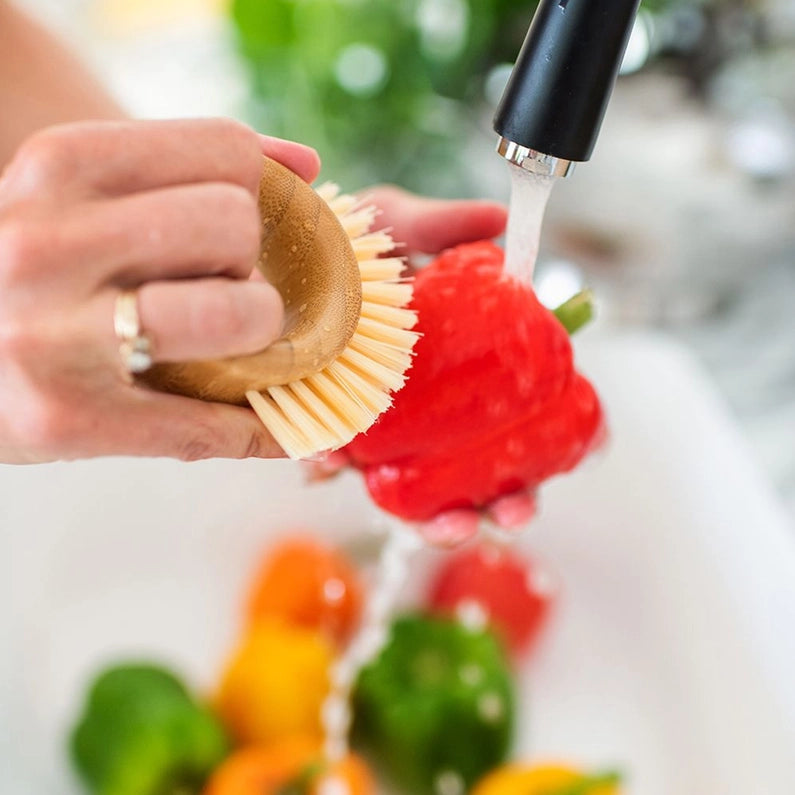 We’re all about farm to table but could probably do without all the mess that comes with it. Get your organic produce squeaky clean with this little earth-friendly wonder that works on everything from the firmest peppers to the most delicate peaches. Bamboo, Recycled Plant Fiber Bristles (Tampico), Recycled Plastic Bristles. Hand Wash.
