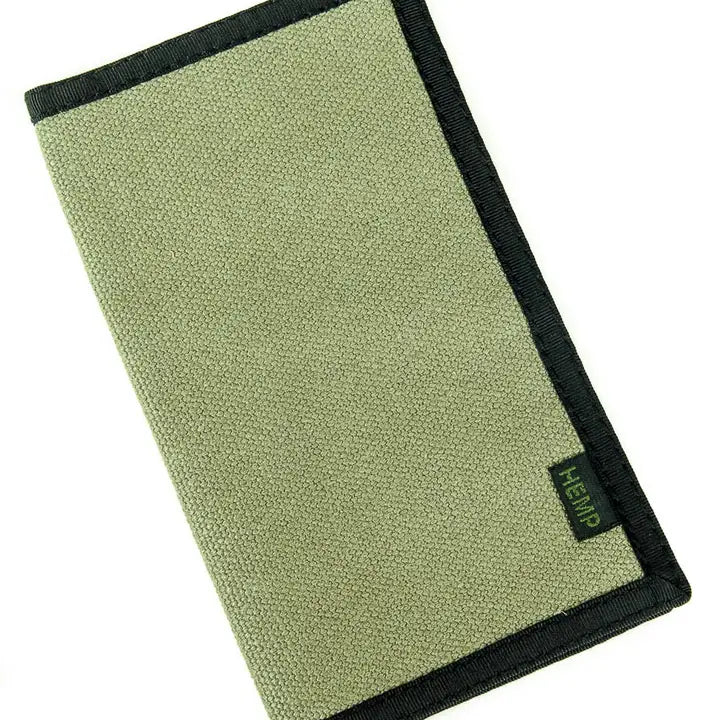 Hemp checkbook cover features a pouch for checks and register and one for the cash. Also has a sleeve for license or credit card. 7" x 3.5". Imported.